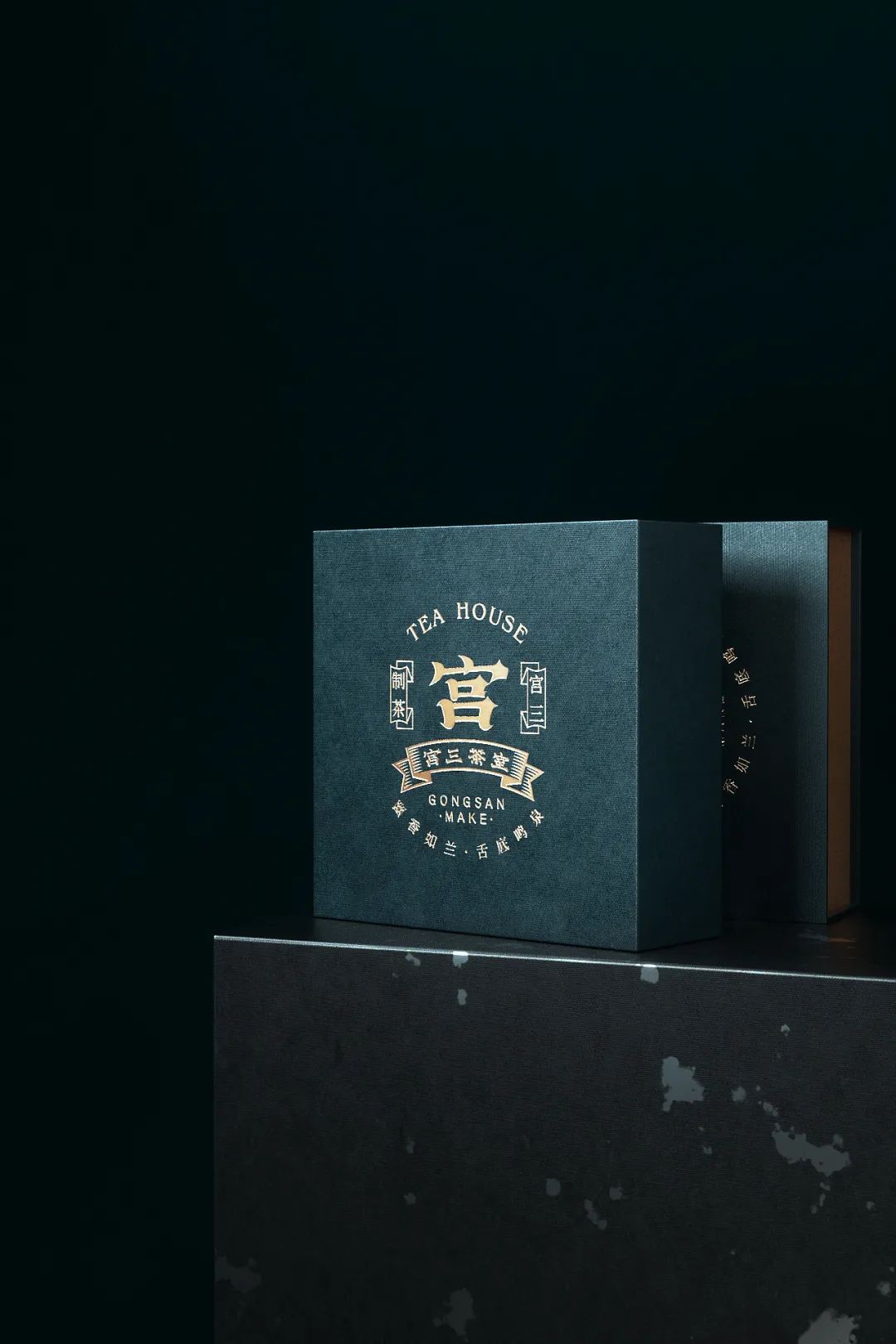先来看一家把茶室和茶品牌结合的传统茶室--宫三茶室,主打福建茶系列根据闽南一带“宁可百日无肉,不可一日无茶”的喝茶文化整体的视觉设计也更讲究地方特色首先在LOGO设计组合上以“宫”字作识别符号苍劲有力而不失优雅的笔锋美感十足搭配民国复古调性的辅助信息排版塑造了家族传承的感觉采用了烫金工艺设计的LOGO在墨绿色的礼盒映衬下更显品质和岁月感形成更鲜明的色彩碰撞看上去不会过于单调拉开礼盒里面是四款独立包装的茶罐以不同颜色的LOGO进行品类区分延续品牌的调性之余又进一步丰富了包装视觉